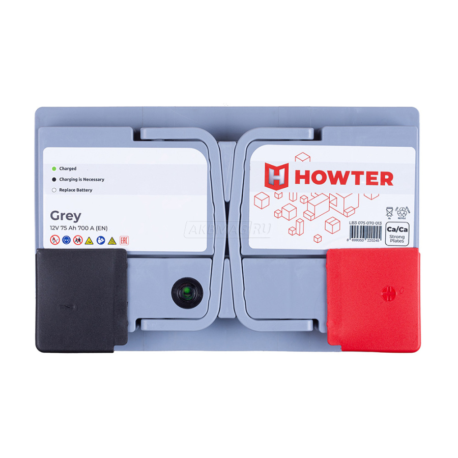 Аккумулятор автомобильный HOWTER Grey 75RS 700 А обр. пол. 75 Ач (LB3075070013)